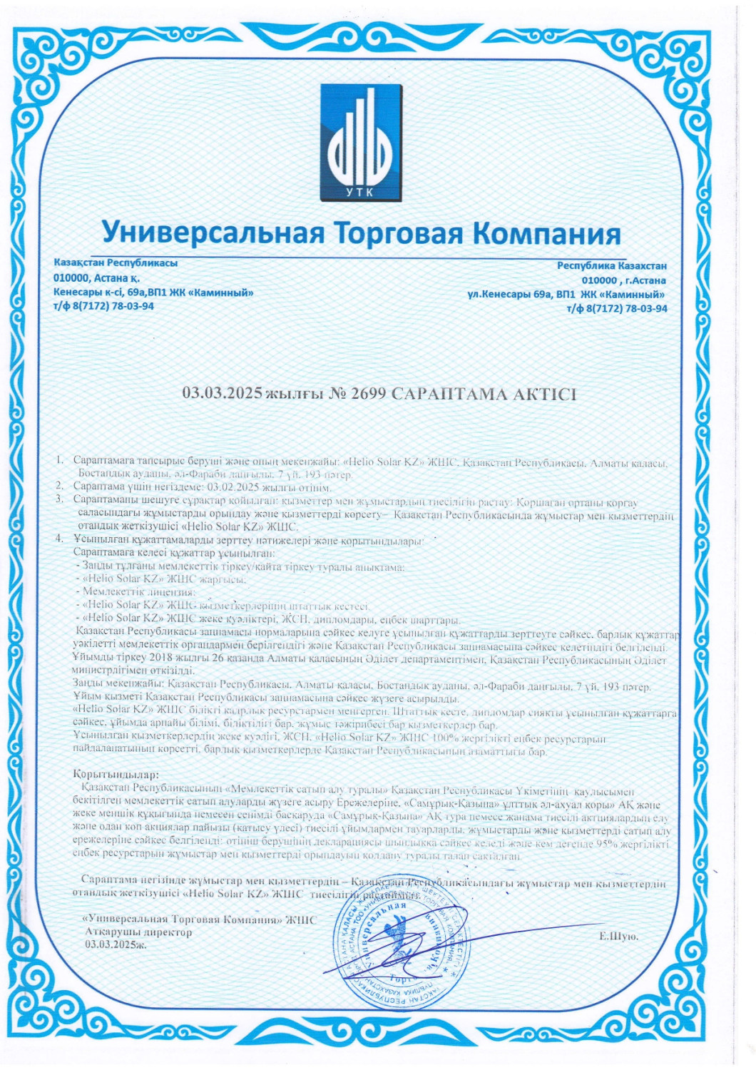 Helio Solar тек күн панельдерін сатпайды, біз ертеңгі күннің энергетикалық желісін салып жатырмыз. Біздің жобалар қазірдің өзінде бизнес пен жеке клиенттерге энергия шығындарын азайтуға, сондай-ақ тұрақты экологиялық шешімдерді әзірлеуге көмектесуде.