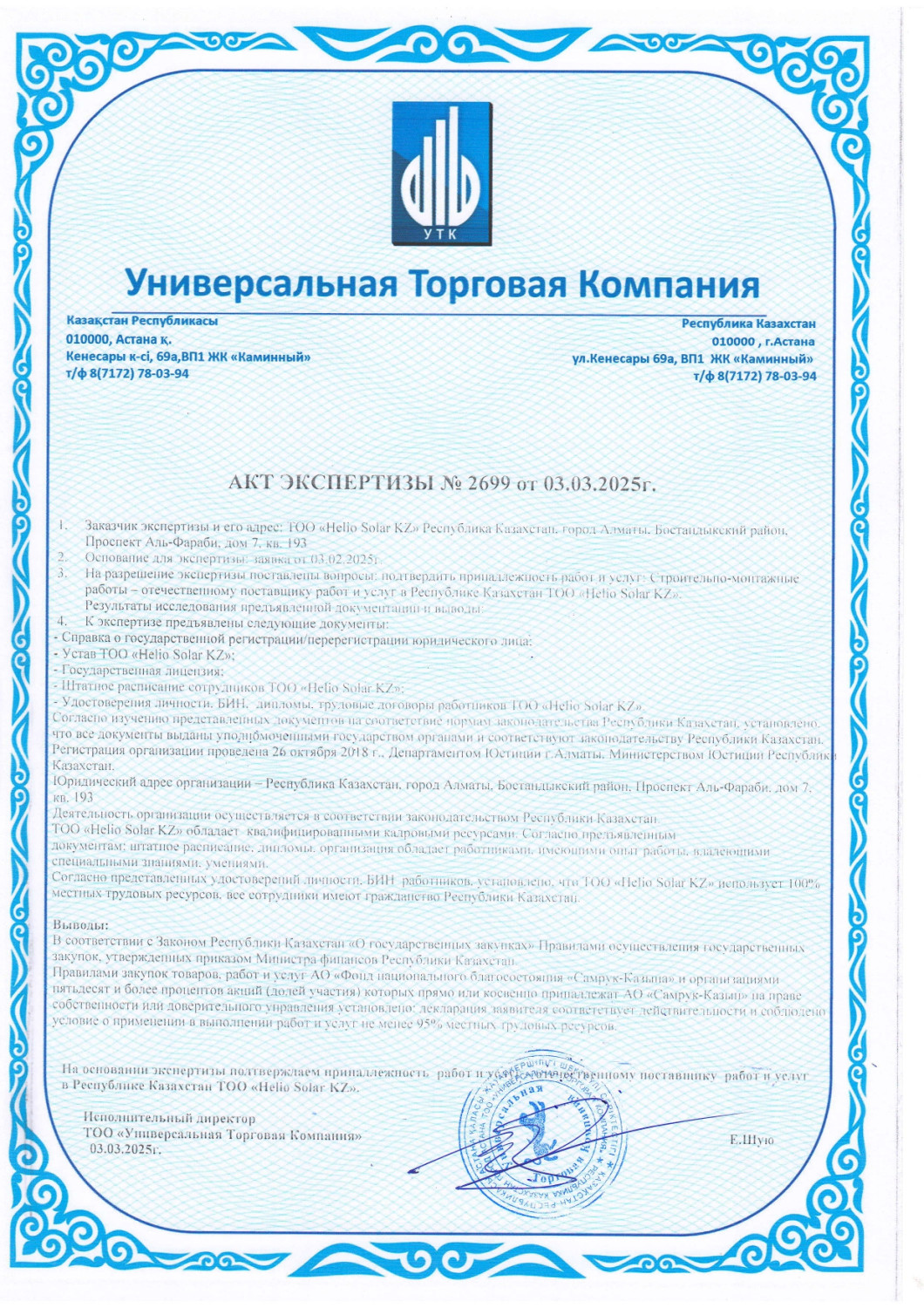 Тәжірибелі мамандар командасы мүмкіндігінше қысқа мерзімде шешімдерді ұсынатын жоғары мобильді, ал бәсекеге қабілетті бағалар мен қатаң есеп беру тәртібі компанияны күн энергетикасы саласындағы сенімді серіктес етеді.